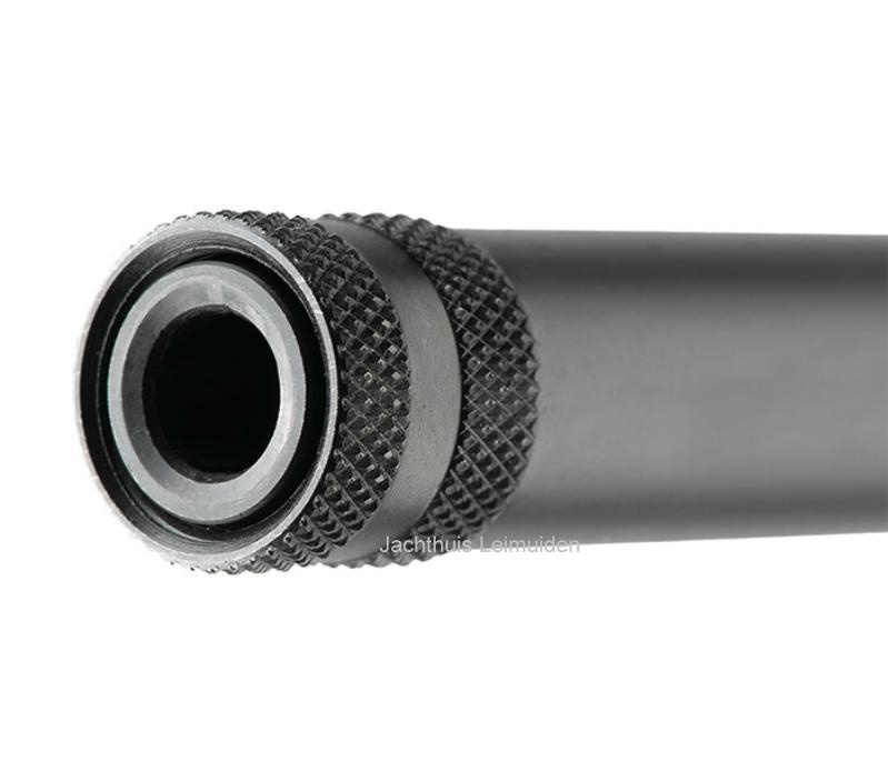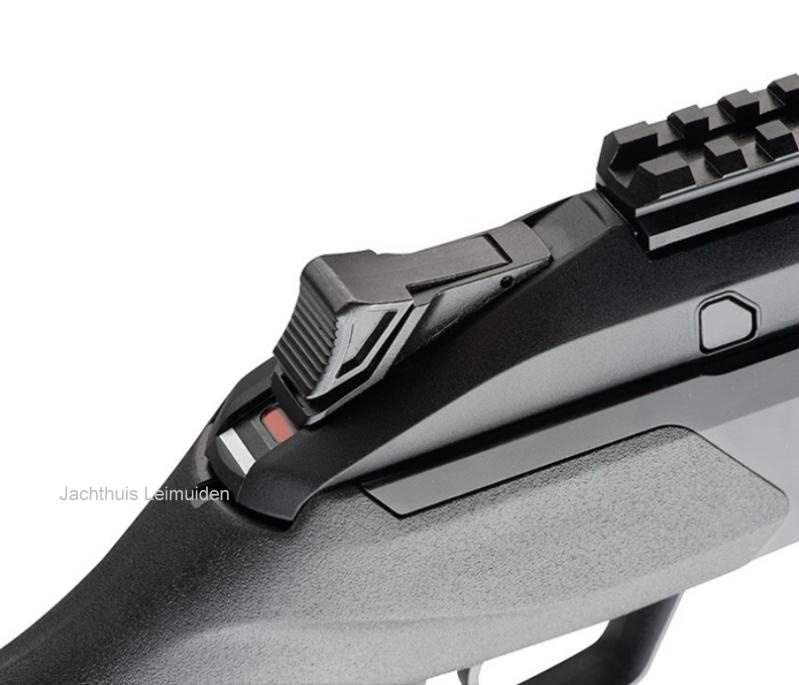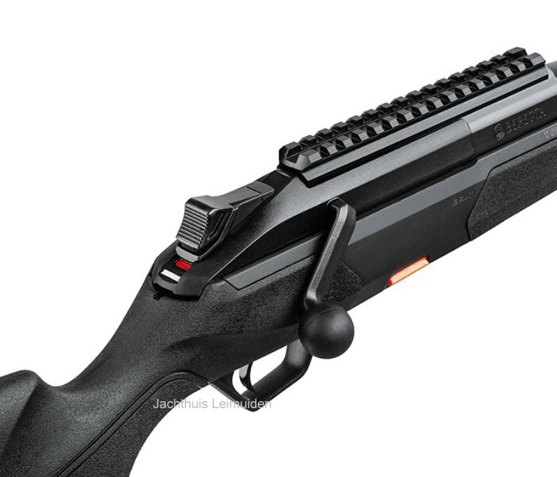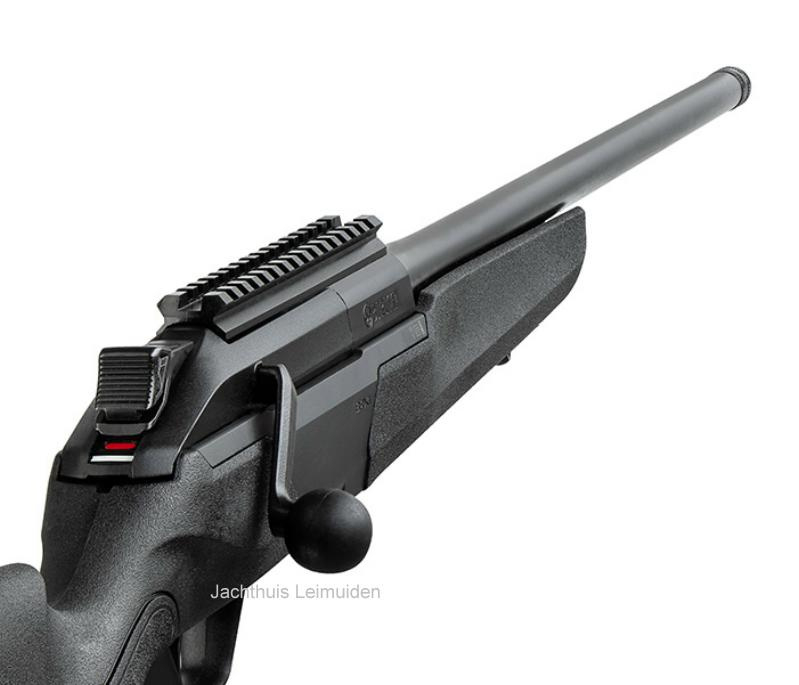- Zwarte polymer kolf met anti-slip afwerking